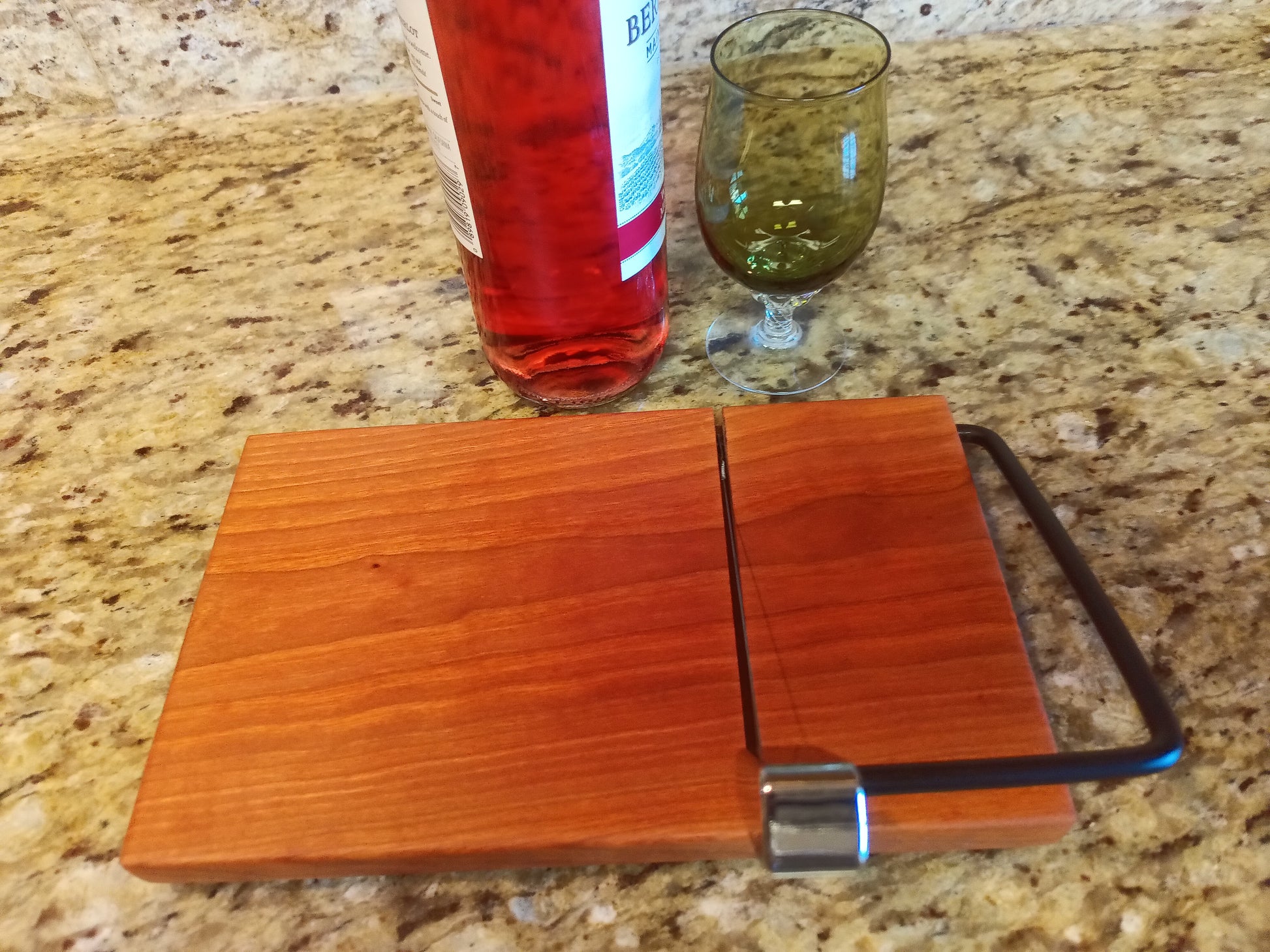 Wood, Steel bar with cheese cutting wire and non-slip, non-marring silcone feet